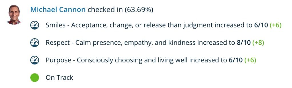 I don’t want the measure of my success in life to be whether I did something or not. However, I’ve learned that these little things that I’m reminding myself about do lead into action-choices that are closer to the person I desire. Therefore, I’m going to keep these key results around for a bit longer.