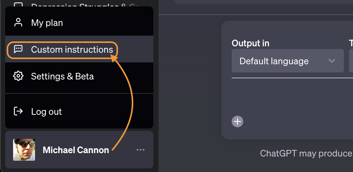 ChatGPT’s Custom Instructions are found as part of your profile.
