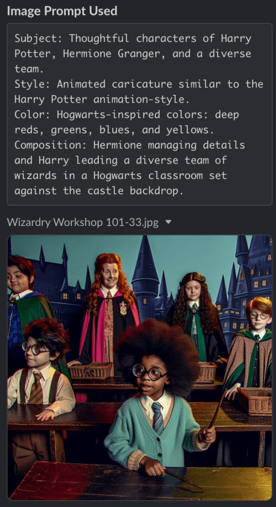 While that image prompt creation prompt is the core of the image creation process, other components must be included for best results: Source Materials and Custom Instructions.